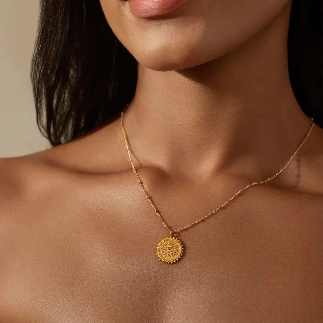 Kette True Visionary White Topaz Evil Eye Coin, vergoldet