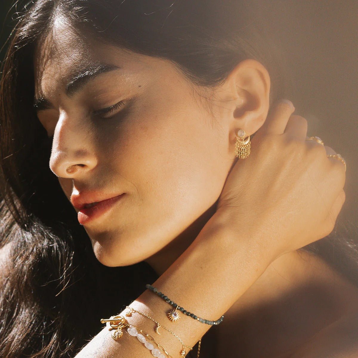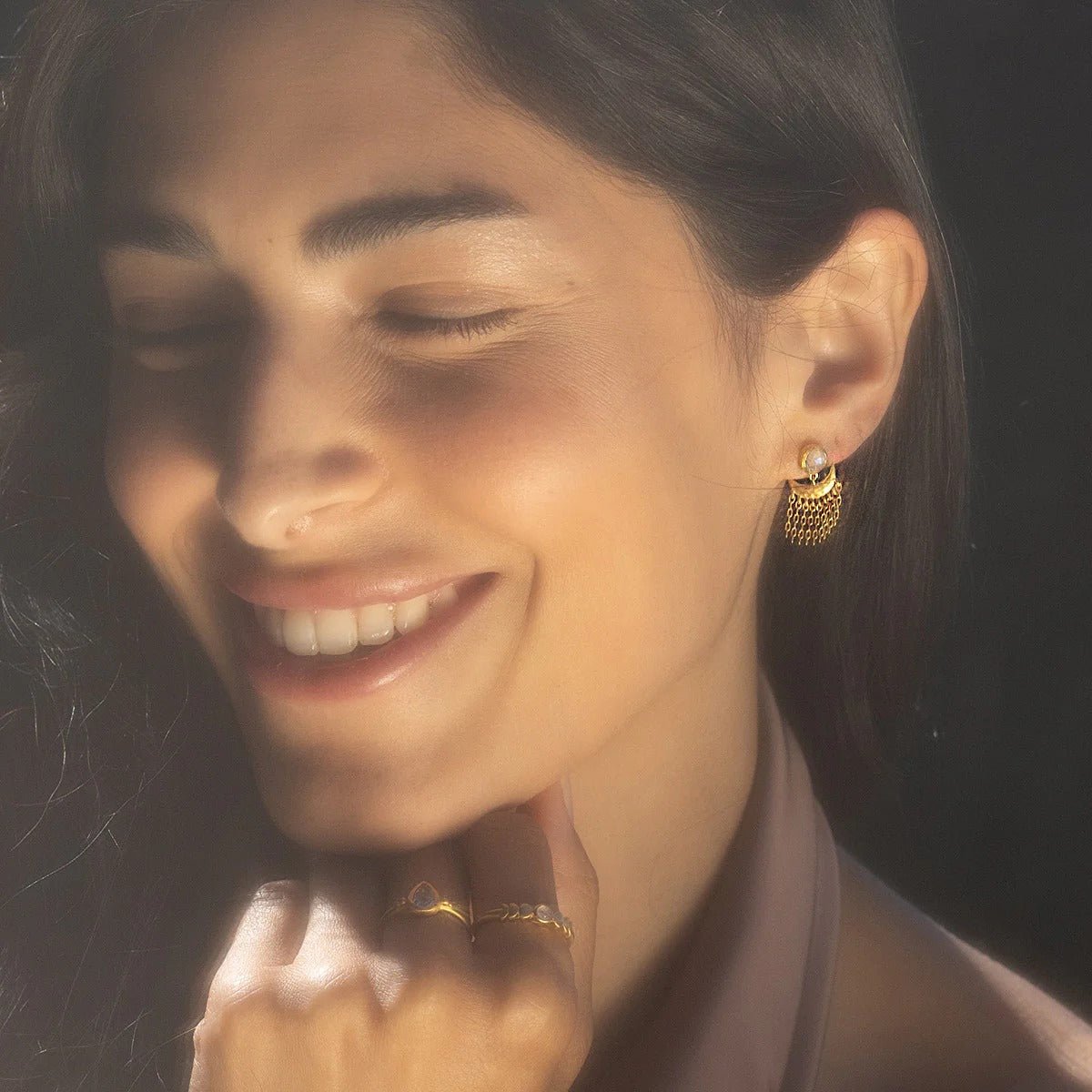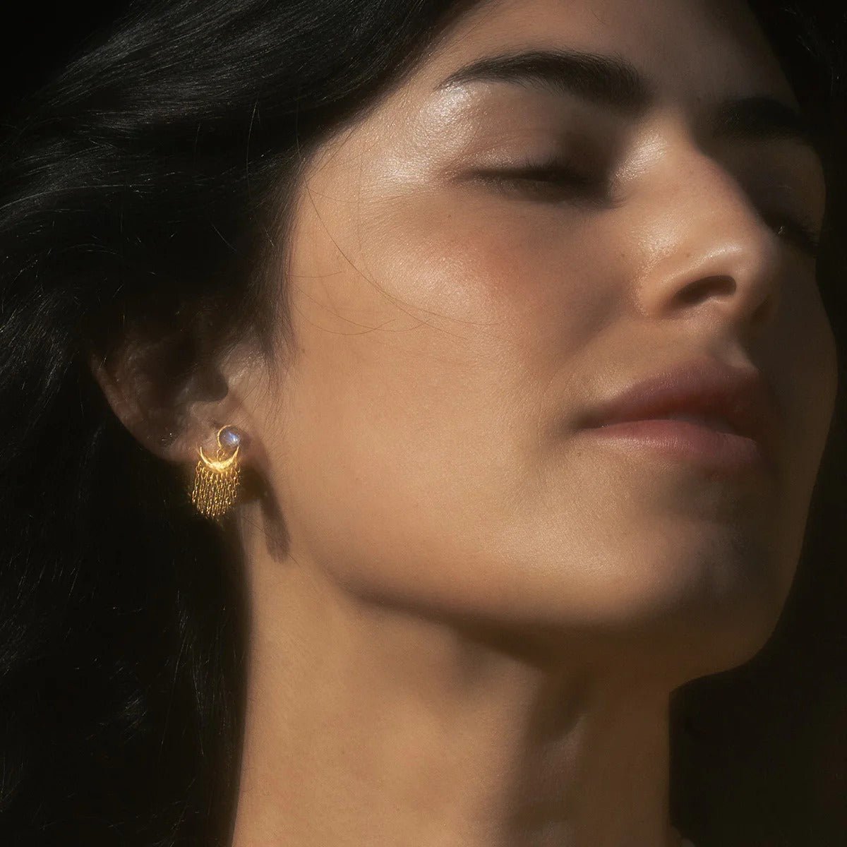 Ohrringe Scattering Stardust Moonstone Fringe Stud Drop, vergoldet